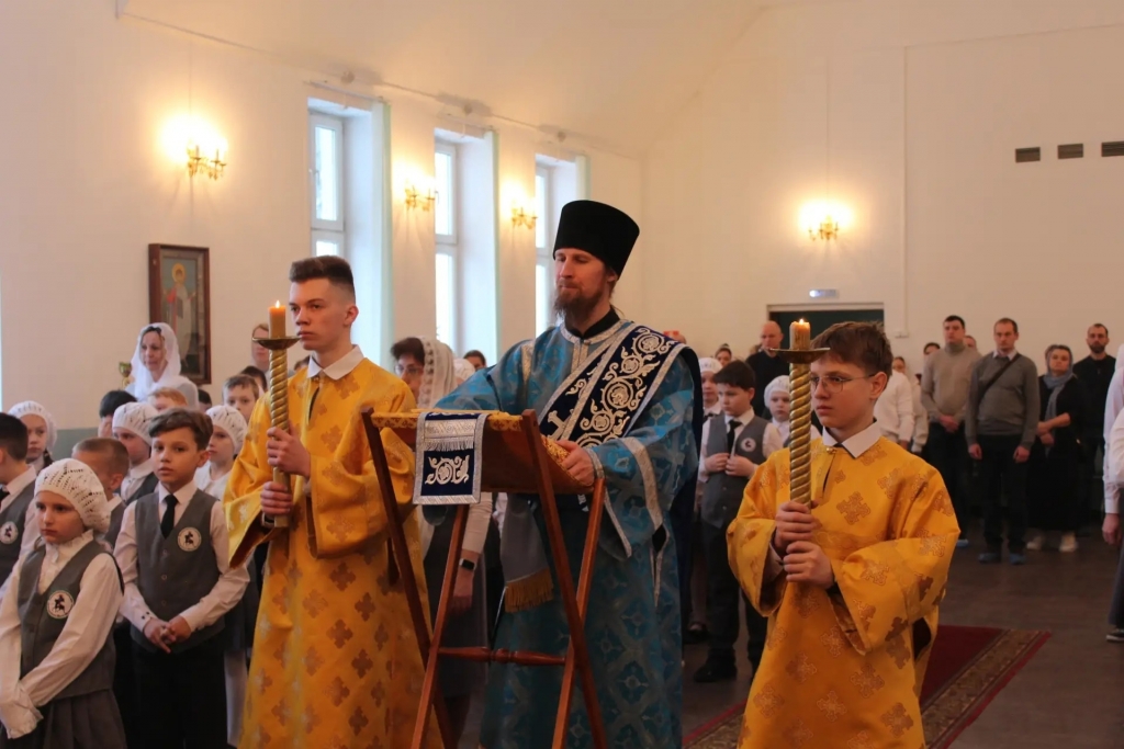 Во время богослужения девятиклассник Матвей Лобашов рассказал гимназистам о церковном празднике.Также был совершён чин освящения свечей на праздник Сретения. По окончании Литургии иеромонах Иов огласил Патриаршее послание по случаю празднования Дня православной молодежи.