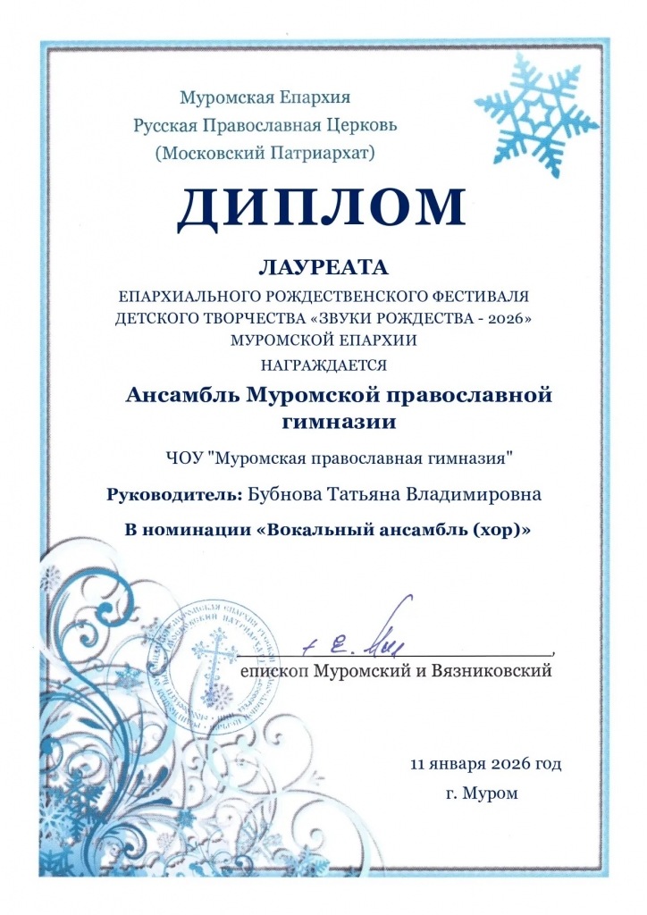 11 января 2026 года в гимназии прошел XII Епархиальный Рождественский фестиваль детского творчества «ЗВУКИ РОЖДЕСТВА - 2026».