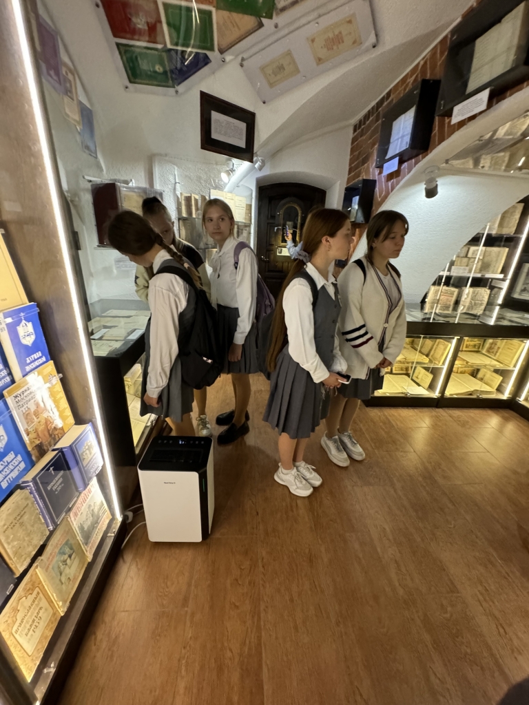 Затем мы совершили небольшую прогулку по территории Благовещенского мужского монастыря, наслаждаясь солнечным осенним днем и любуясь красивыми ухоженными клумбами, и посетили музей книги. В этом музее хранятся как первые рукописные, так и новые печатные книги. На этом экскурсовод попрощался с нами и разрешил еще раз самостоятельно пройтись по музею и рассмотреть экспонаты.