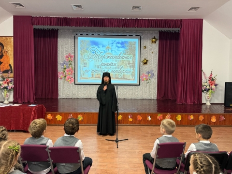 В этот день к ученикам 1-11 классов обратился директор гимназии иеродиакон Тихон, а затем администрация гимназии провела церемонию награждения лучших гимназистов по итогам первой четверти.