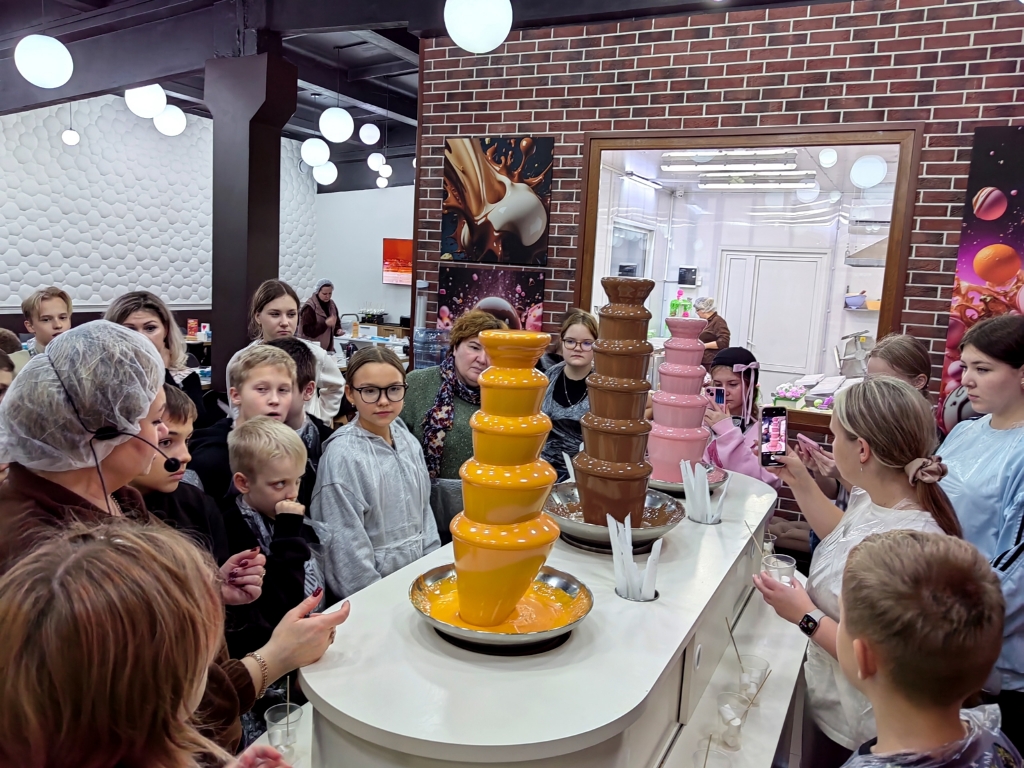 Затем началась самая вкусная часть нашего путешествия: мы отправились на производство шоколада. На мастер-классе «Магия шоколада» мы сами сделали шоколадного мишку, попробовали вкуснейший бельгийский шоколад в трех шоколадных фонтанах, а в завершение посмотрели, как делают сувенирный шоколад и наносят на него рисунок, а также ручное и машинное изготовление шоколадных фигурок.